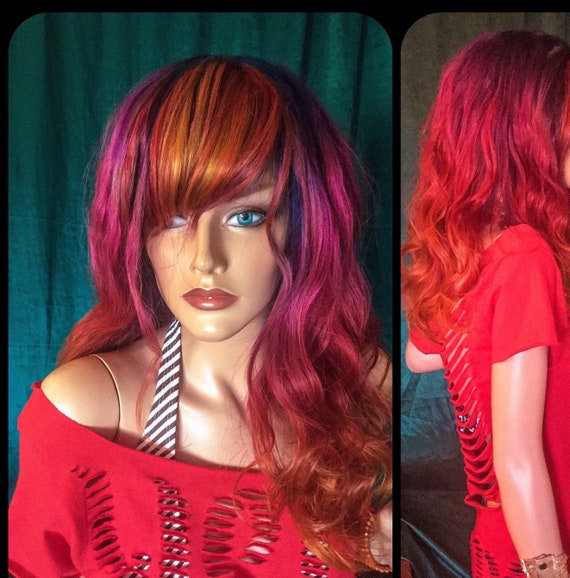 Sunsethair100 Human Hair Hard Lace Front Wig With Bangs Etsy Ireland
