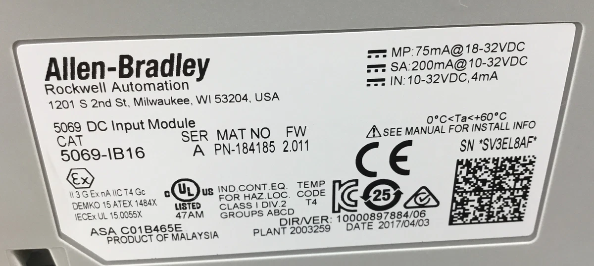 Web Plc Hardware Allen Bradley 5069 Ib16 Series A Plch Packaging. This product was certified with the above certifications as of 2024-01-08. For more information see page 54 and page 60 Digital IO Modules IO Type Cat.